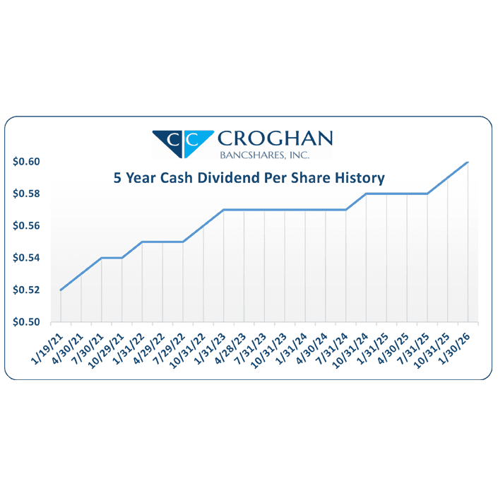 Deposit your dividends to any bank in the USA at no charge. Call Croghan’s Investor Relations Officer or Computershare to obtain a Direct Deposit enrollment Form.