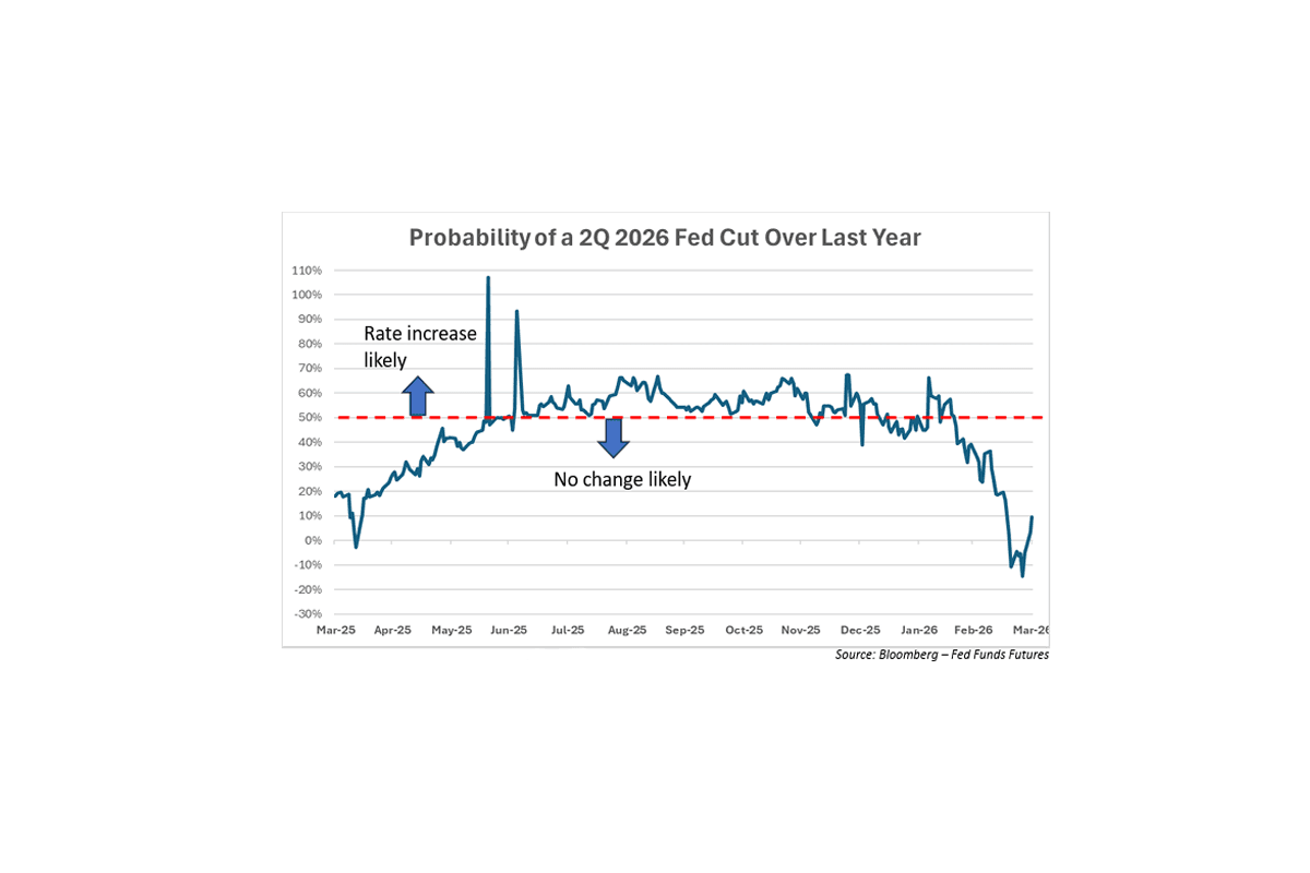 - Starting last December, an improving economic outlook reduced the chance of a 2Q 2026 rate cut from likely to unlikely.